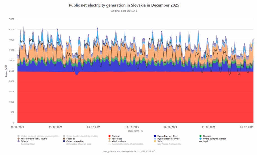 Slovensko je elektricky sebestačné. Ročne vyrobí približne 30 TWh elektriny, pričom spotreba je okolo 27 TWh, teda časť produkcie sa vyváža. Zhruba 60 % výroby pochádza z jadrových elektrární, ktoré patria medzi najlacnejšie stabilné zdroje energie. Reálne výrobné náklady jadrovej elektriny sa pohybujú približne na úrovni 60–70 €/MWh. Napriek tomu sa elektrina na trhu predáva často výrazne drahšie.