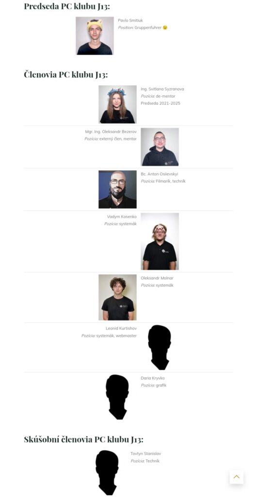 Nejako som zablúdil na stránku PC Klubu na internáte Jedliková v Košiciach. Na stránke je zoznam členov klubu https://j13.sk/pc-klub-sk/